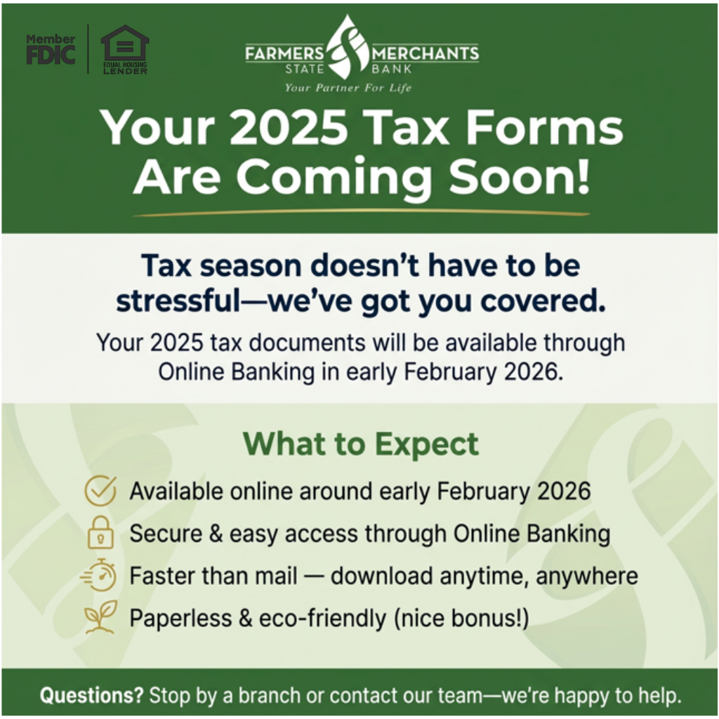 Take full control of your banking needs and maintain access to your accounts from almost anywhere with the Farmers & Merchants State Bank mobile banking app. Available for Apple and Android devices, this app allows you to access your accounts, make transfers, deposit money and much more. Our goal is to make your banking experience with us as convenient as possible, and we encourage you to download the app from your device's app store provider to start taking advantage of its features. If you want to learn more about our mobile banking services, click the button below.